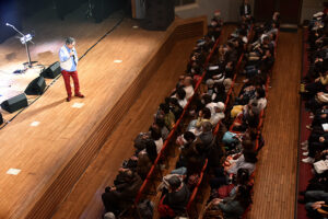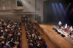 今日のお客様の年齢層が若いです。最前列に 海援隊 武田鉄矢 中牟田俊男 千葉和臣 の うちわ を持ったお客様が!武田さん思わず前に出て話しかけました。若いご夫婦のお客さんから「先週大阪(26.02.15和泉シティプラザ)に行きました」武田さん「やりにくいな!話が被ったらごめんやで!」客席 ワァ〜から一気に盛り上がります。トークには歌に関連した話題が多くなりますのでトークが重なるんです。武田さん曰く 若い人だからこそに「手渡したい言葉があります 人生は人は再会します」 恋 友情 対立 たとえ悪い状況で別れても再会します。これが人生の苦味人生の味わいです。